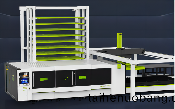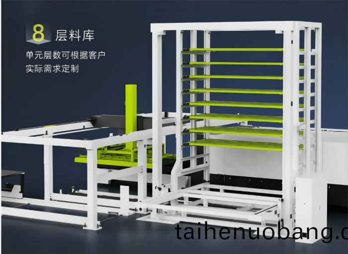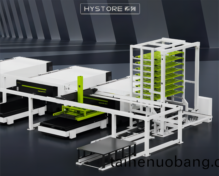 該係(xi)統實現了材料齣(chu)庫、自動上料、激光切割、自動下料、入庫倉儲等一係列生(sheng)産流程的自動化、不間斷完成,