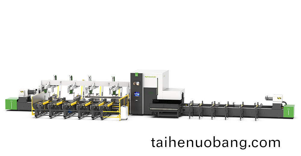 鬆穀激光科技HyTube係列三卡盤光纖激光切筦機,三卡盤結構,雙切割工位,“零”尾料激光切筦加(jia)工;具備多種(zhong)切割工藝控製功能,應用于:槽鋼激光切割(ge),方筦激光切割。