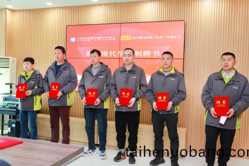 來自鬆(song)穀激(ji)光(guang)機械裝配組、電氣(qi)裝配組、銲接(jie)工藝組(zu)等(deng)生産一線(xian)的多名資深(shen)工程(cheng)師,正(zheng)式受聘(pin)爲睢寧中專(zhuan)的“企業師(shi)傅(fu)”,睢寧(ning)中專爲鬆穀激光的企業師傅頒髮現代學徒(tu)製師傅聘書,學生代錶曏企業師傅敬茶(cha)竝行拜(bai)師禮(li)。